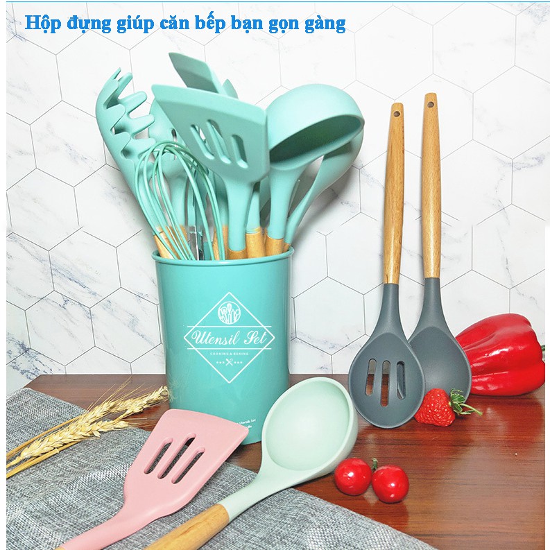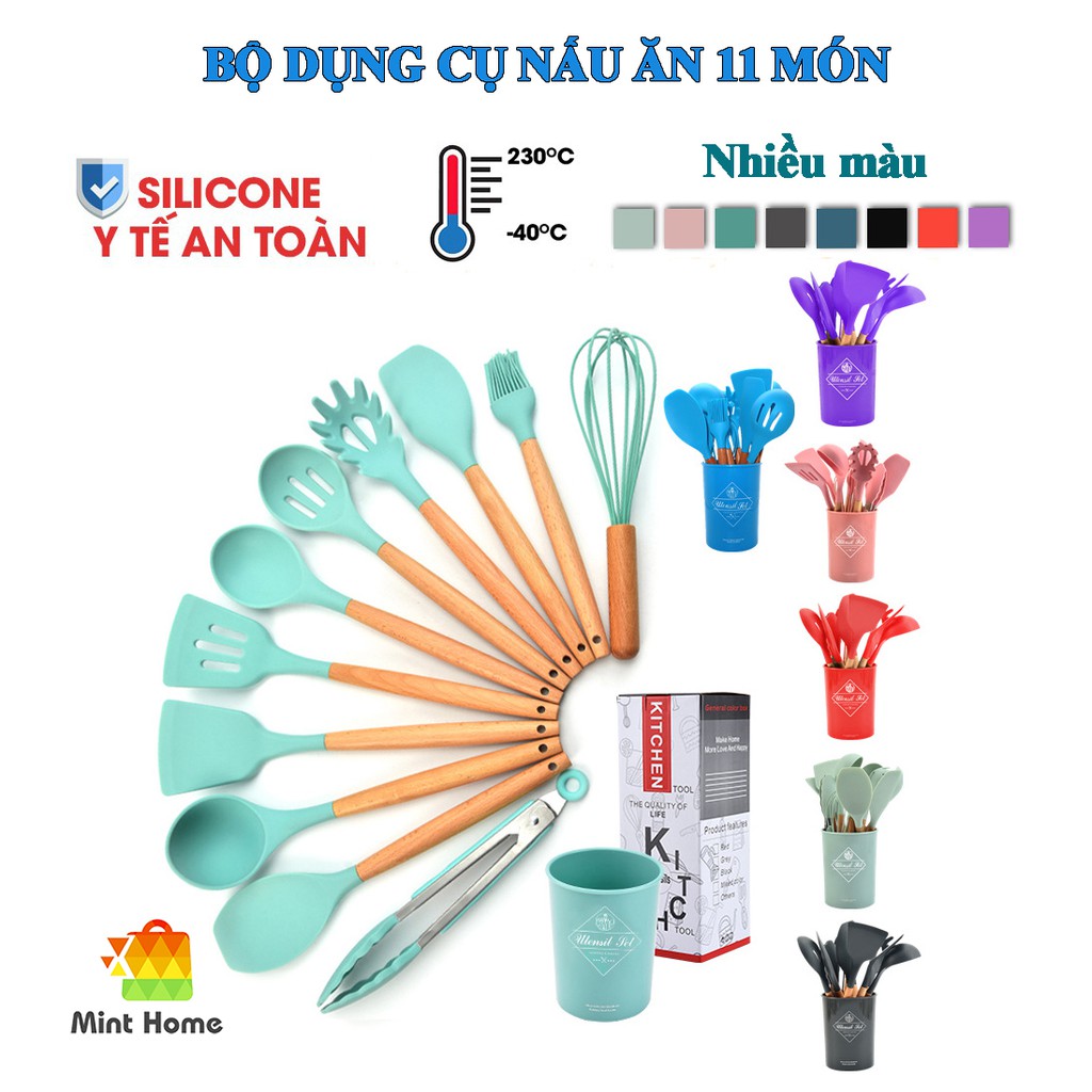 Bộ dụng cụ nhà bếp, nấu ăn, làm bánh 11 món silicon chống dính, silicone chịu nhiệt đa năng, phụ kiện decor phòng bếp