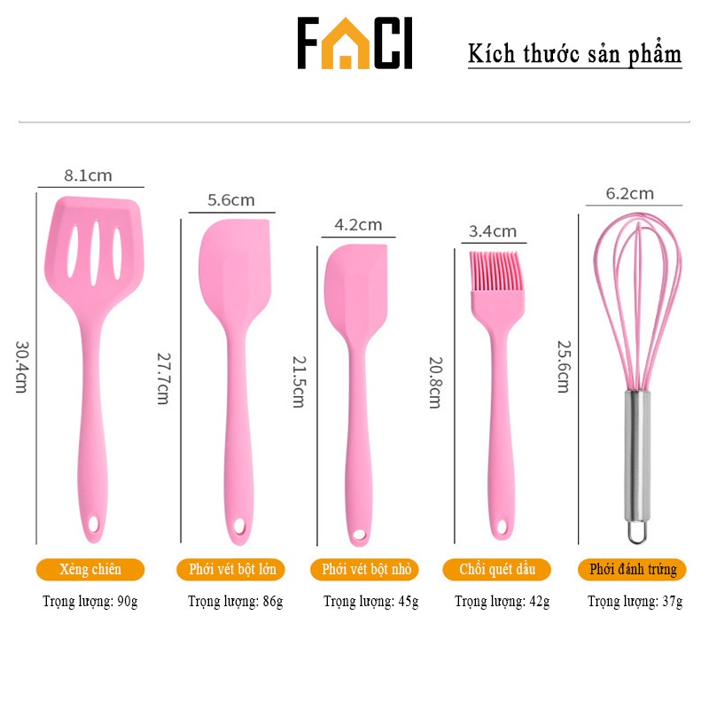 Bộ dụng cụ nhà bếp, nấu ăn làm bánh silicon 5 món chịu nhiệt tiện dụng FACI shop✅ Thông tin sản phẩm: