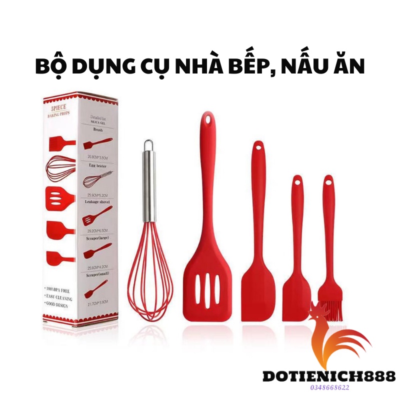 Bộ dụng cụ nhà bếp nấu ăn làm bánh 5 chi tiết chất liệu silicon chịu nhiệt cao cấp
