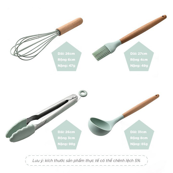 Bộ dụng cụ nấu ăn, làm bếp, làm bánh bằng silicone chống dính chịu nhiệt tay cầm gỗ tự nhiên tiện dụng cho chị em--------------------------------------------------------------------