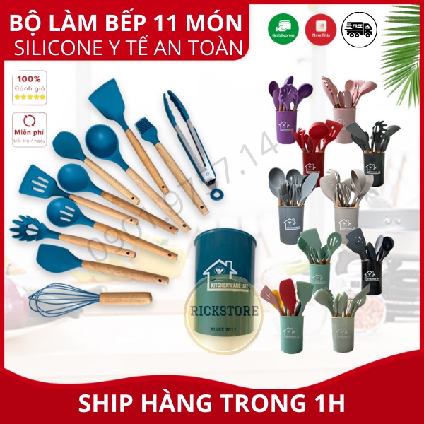 Bộ dụng cụ nhà bếp, nấu ăn làm bánh 11 món bằng silicone chịu nhiệt cao RICKSTORE