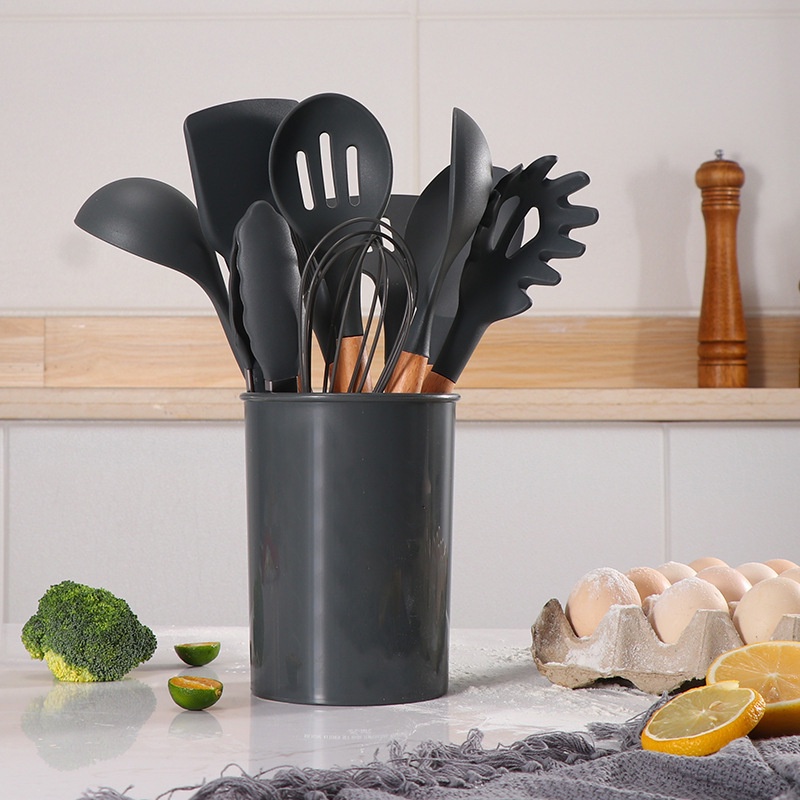 🌿 Bộ dụng cụ bao gồm 11 món + một chậu đựng: đánh trứng, quét dầu, kẹp, phết bơ, muỗng múc mỳ spaghetti, xẻng lật, xẻng lật có lỗ, muỗng, muỗng lỗ, thìa to, thìa lỗ.