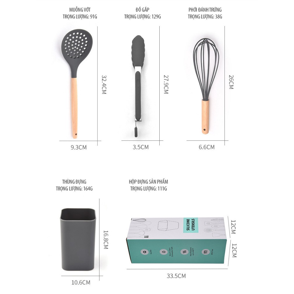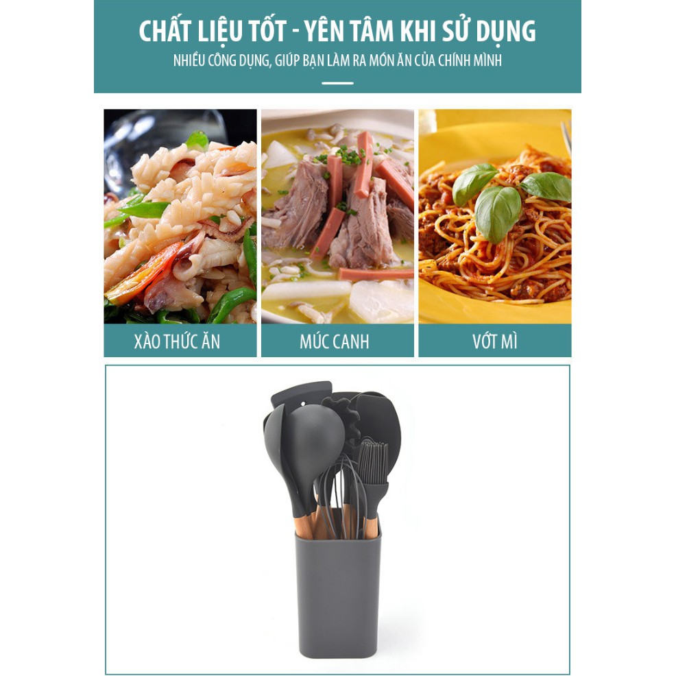 Bộ Dụng Cụ Nhà Bếp Silicon 13 MónĐẶC ĐIỂM NỔI BẬT :