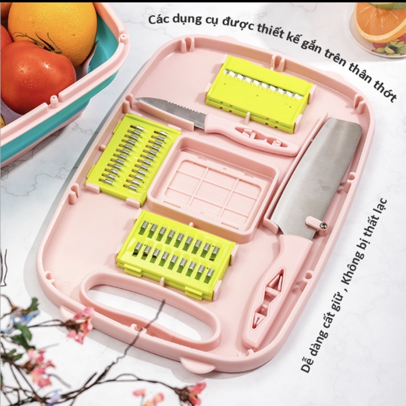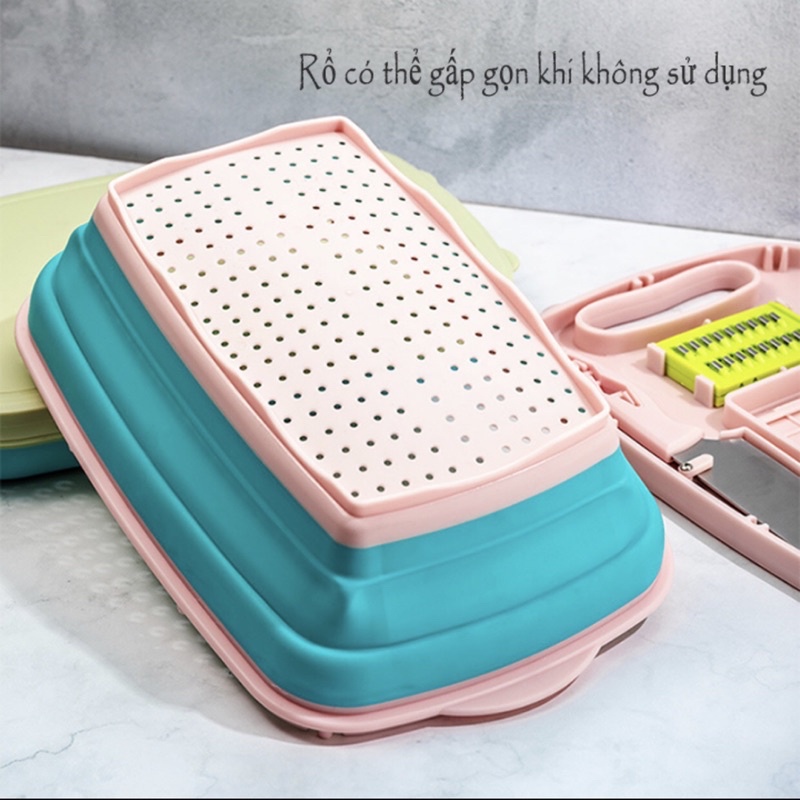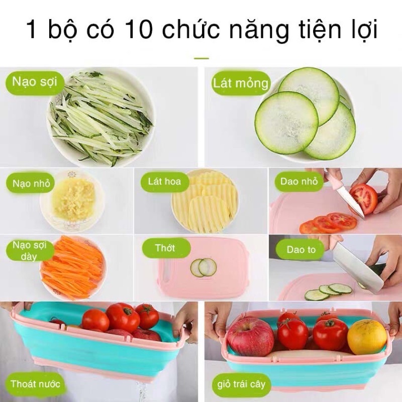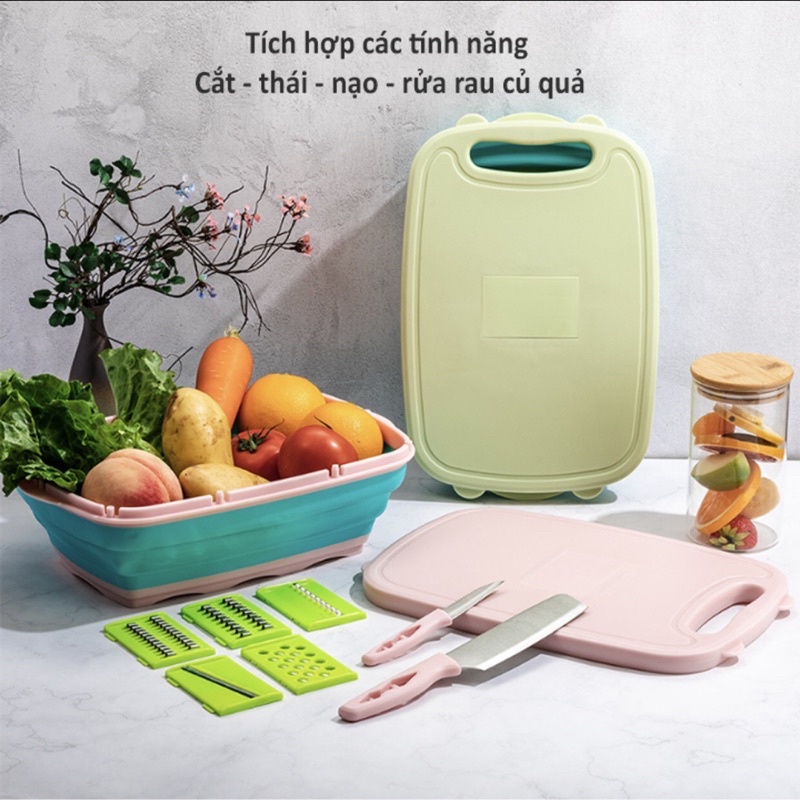 Bộ Dụng Cụ Nhà Bếp Thớt , Rổ , Dao , Nạo Đa Năng 9 Món Gấp Gọn Thiết Kế Sang Trọng Tiện Lợi