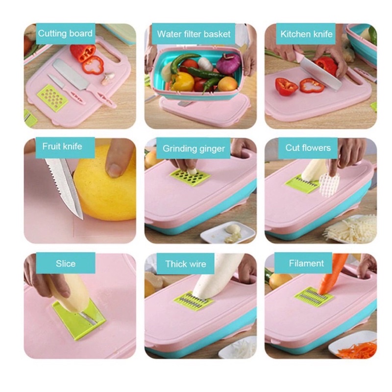 Giới thiệu Bộ Dụng Cụ Nhà Bếp Thớt , Rổ , Dao , Nạo Đa Năng 9 Món Gấp Gọn Thiết Kế Sang Trọng Tiện Lợi