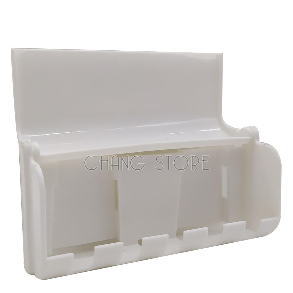 Bộ sản phẩm gồm một hộp đựng kem đánh răng có thể giúp bạn lấy kem đánh răng tự động cùng với 1 giá để bàn chải có thể để được 5 bàn chải đánh răng, các dụng cụ này đều được gắn vào tường nhờ miếng keo thiết kế ở mặt sau. Bạn không cần phải khoan, đóng đinh hay nhờ hỗ trợ bởi vật dụng nào cũng dễ dàng có thể gắn vật dụng lên dễ dàng.