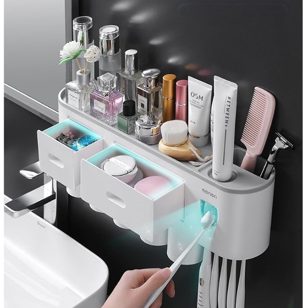 Ngoài tác dụng phục vụ việc đánh răng về sinh cá nhân mỗi ngày của bạn, sản phẩm còn là một chiếc kệ để đồ phòng tắm vô cùng tiện lợi. mỹ phẩm hay trang sức của bạn trong nhà tắm sẽ gọn gàng và an toàn hơn rất nhiều.