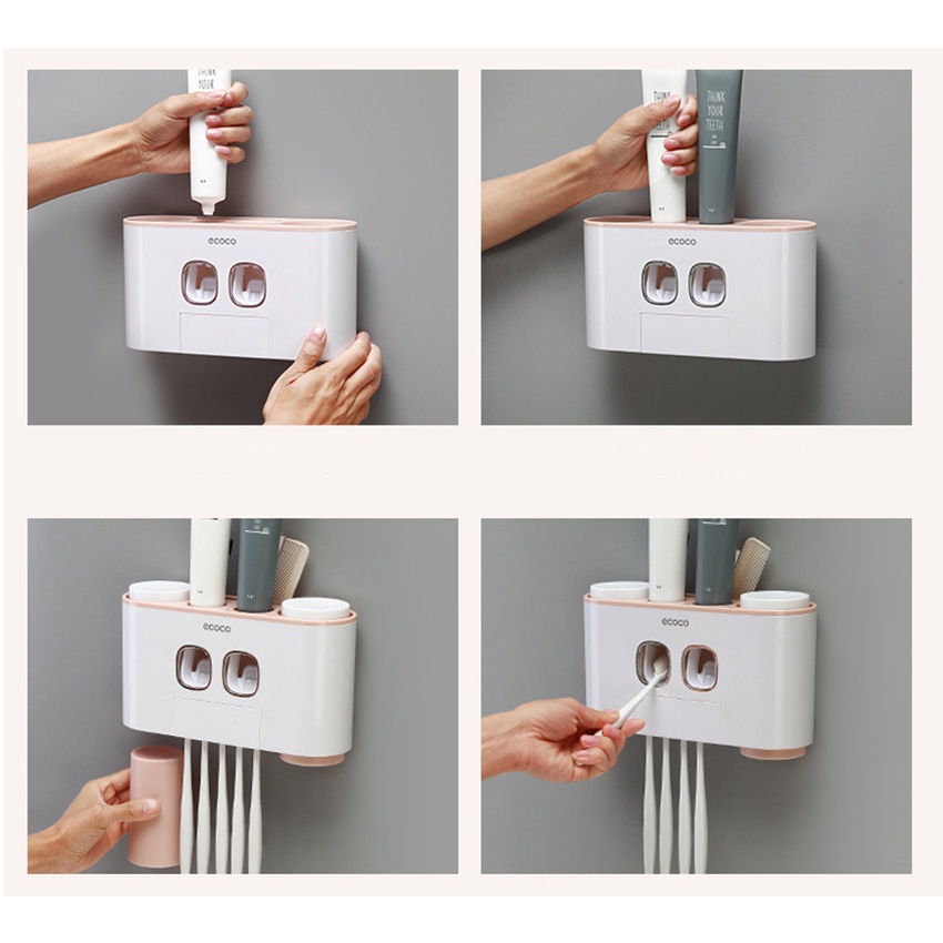- Hai ngăn nhả kem đánh răng. giúp bạn không cần phải cầm trực tiếp đến tuýp kem đánh răng.