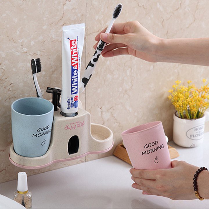 Dụng Cụ Lấy Kem Đánh Răng Tự Động 2 Cốc Lúa Mạch - Nhả Kem 2 Cốc Gắn Tường Chất Liệu Lúa MạchĐặc điểm nổi bật :