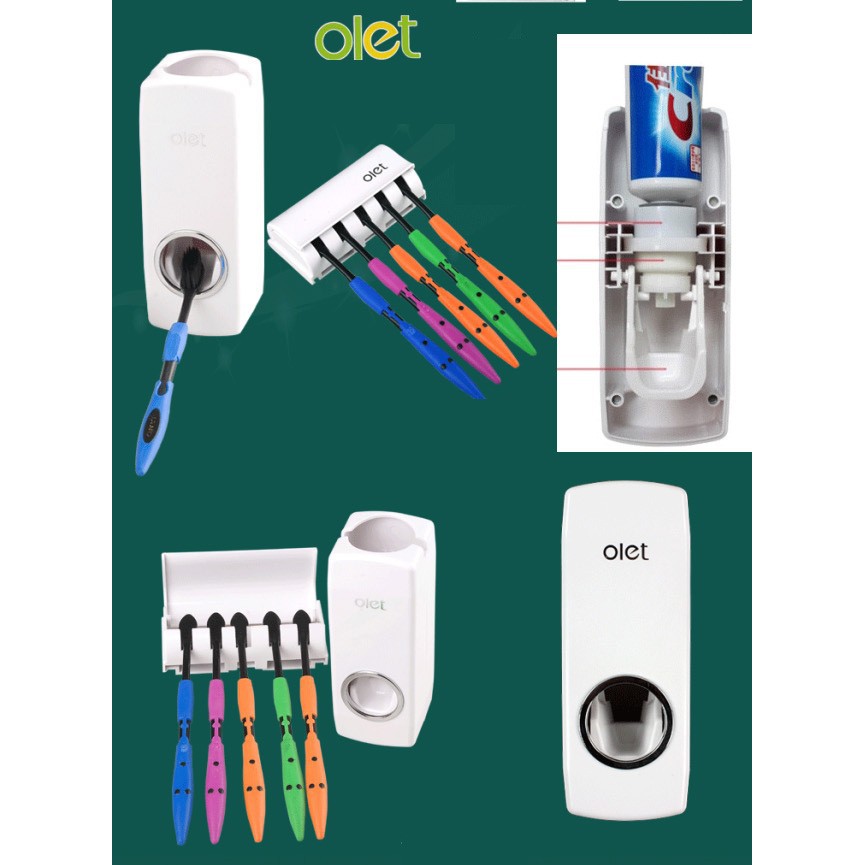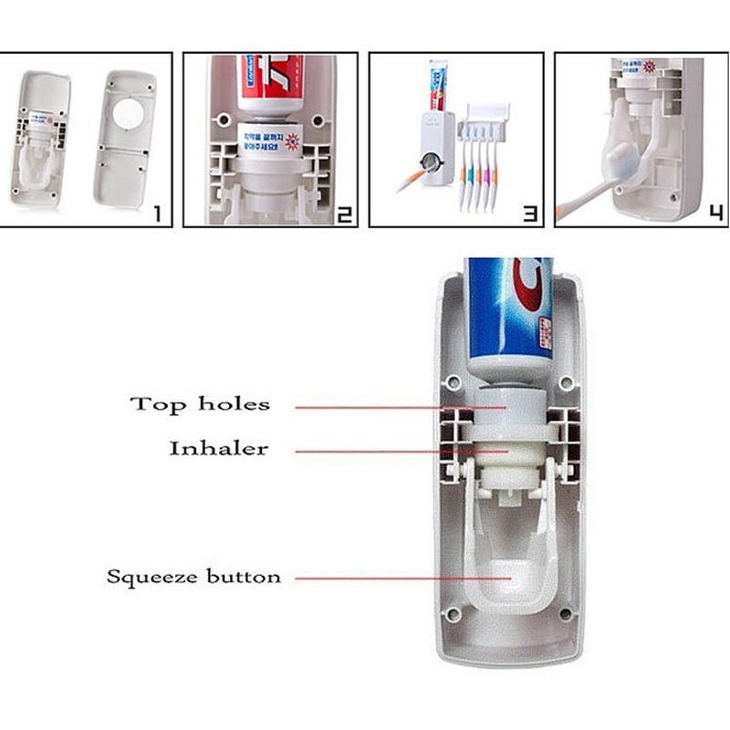 - Bộ sản phẩm gồm hộp đựng kem đánh răng tự động và bộ gắn 5 bàn chải