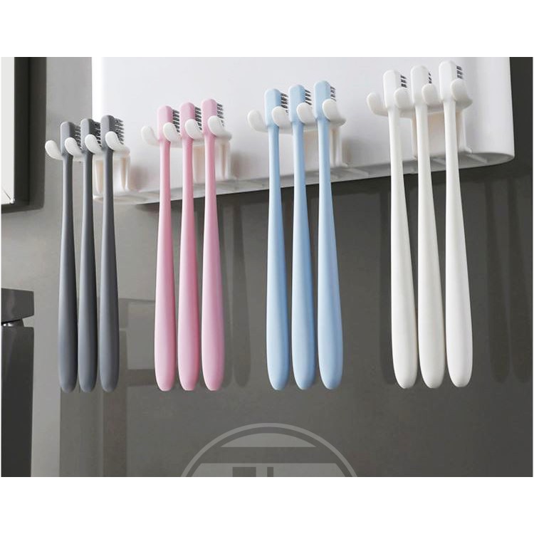 Dụng cụ nhả kem + giá treo bàn chải kèm 4 cốc:Với cấu tạo bên phải là dụng cụ lấy kem đánh răng vô cùng tiện lợi, phía trước là móc treo bàn chải và ly giúp giữ sạch vật dụng cá nhân khỏi bụi bẩn và vi khuẩn gây hại, còn bên trên là kệ đựng các vật dụng cần thiết như sữa rửa mặt, dầu gội, sữa tắm…hay các vật dụng nhà tắm khác.