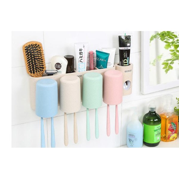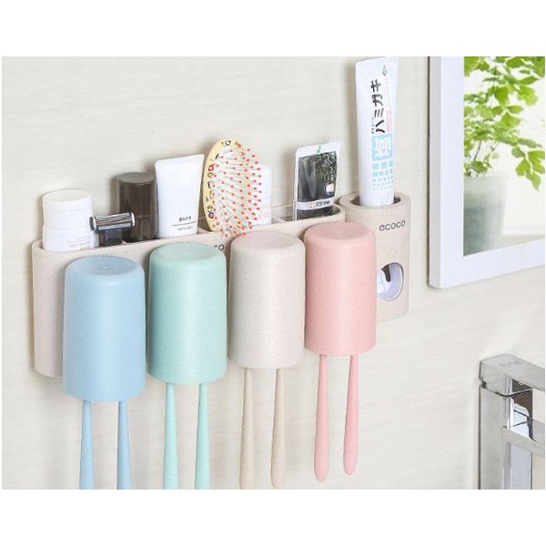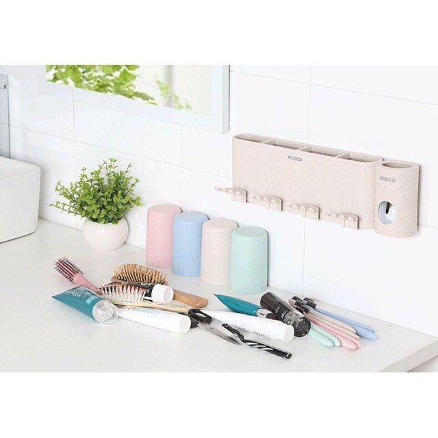 Nhà cửa & Đời sống > Đồ dùng phòng tắm > Kệ đựng bàn chải, kệ nhả kem đánh răng || Dụng cụ nhả kem + giá treo bàn chải kèm 4 cốc EcocoCòn hàng