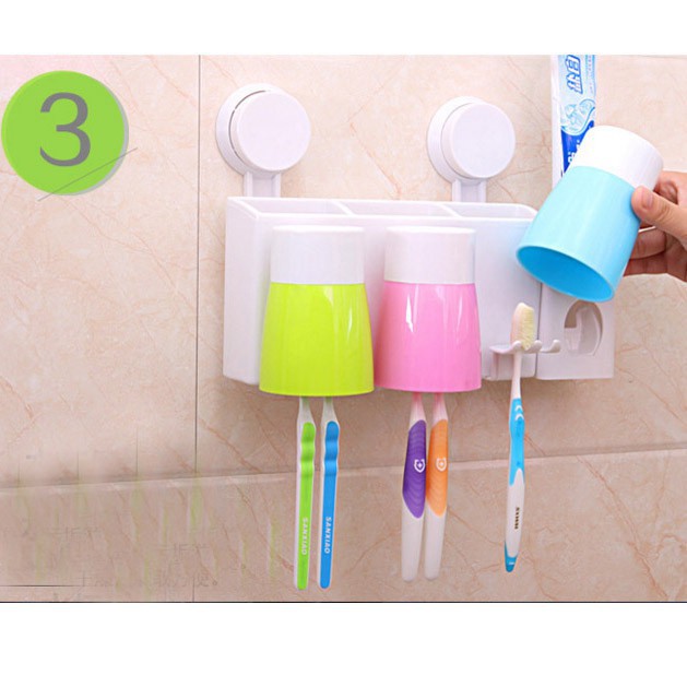 Nhà cửa & Đời sống > Đồ dùng phòng tắm > Kệ đựng bàn chải, kệ nhả kem đánh răng || Dụng Cụ Nhả Kem Tự Động 3 Cốc Hít Chân KhôngCòn hàng