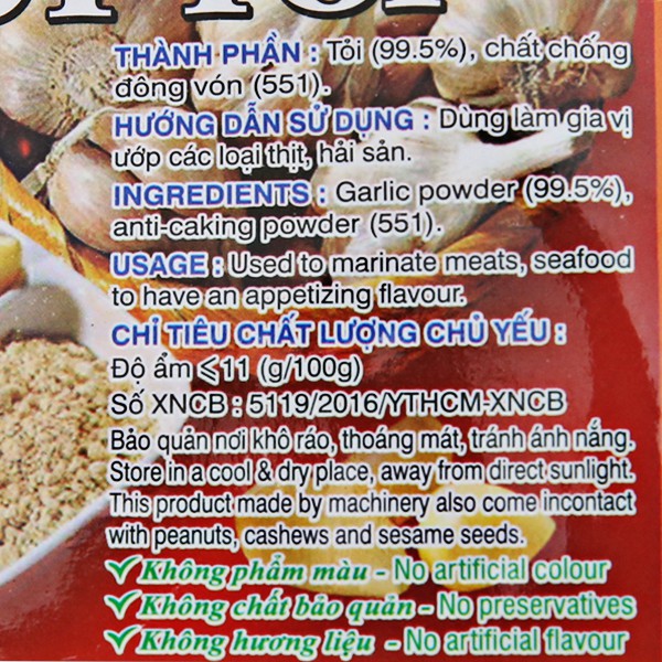 *** Bột tỏi : tạo mùi thơm, tạo mùi đặc trưng ( không nên làm tỏi tươi lạp xưởng sẽ bị chua )