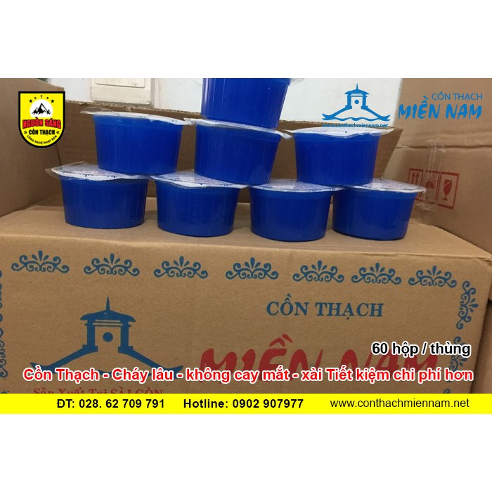 - Cồn Thạch Miền Nam là dòng sản phẩm Cồn Thạch uy tín chất lượng. Cồn nhiệt lượng cao, giúp nấu mau chín thức ăn, Cồn không cay mắt, cháy lâu tàn.