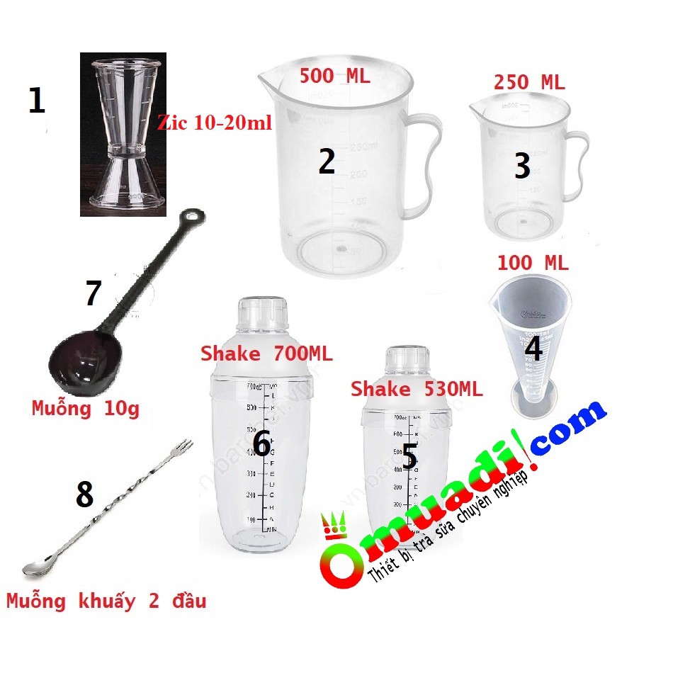Bộ dụng cụ pha chế 8 món gồm :_ Shake 530 ml vạch đen loại tốt