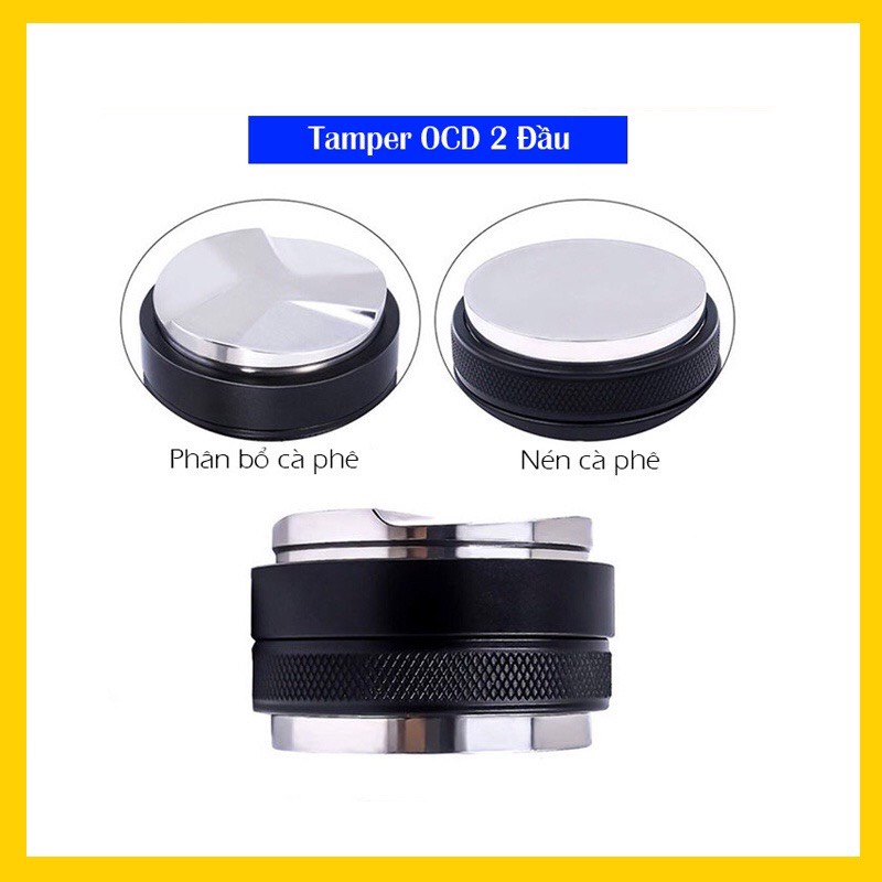 - Tamper OCD 2in1: là sự kết hợp rất thông mình giữa dụng cụ dàn đều cà phê (OCD) và dụng cụ nén cà phê (Tamping) khi pha Espresso ̣̣( mua dụng này bạn không cần phải mua tamper )