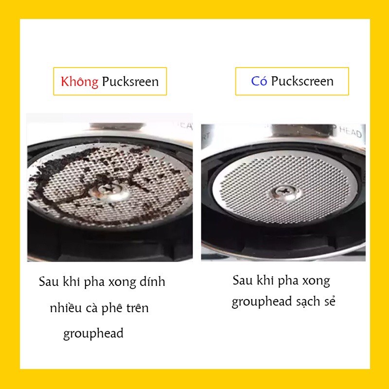 - Pucksreen: giúp phân bổ nước trên bột cà phê 1 cách đồng đều hơn, sau khi pha xong máy pha cũng sạch sẻ hơn