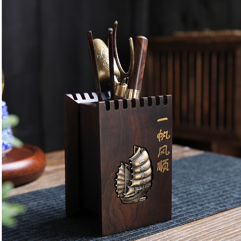 - 1 Hũ đựng dụng cụ bằng chất liệu gỗ mun đen nguyên chất rất nặng tay và chắc chắn