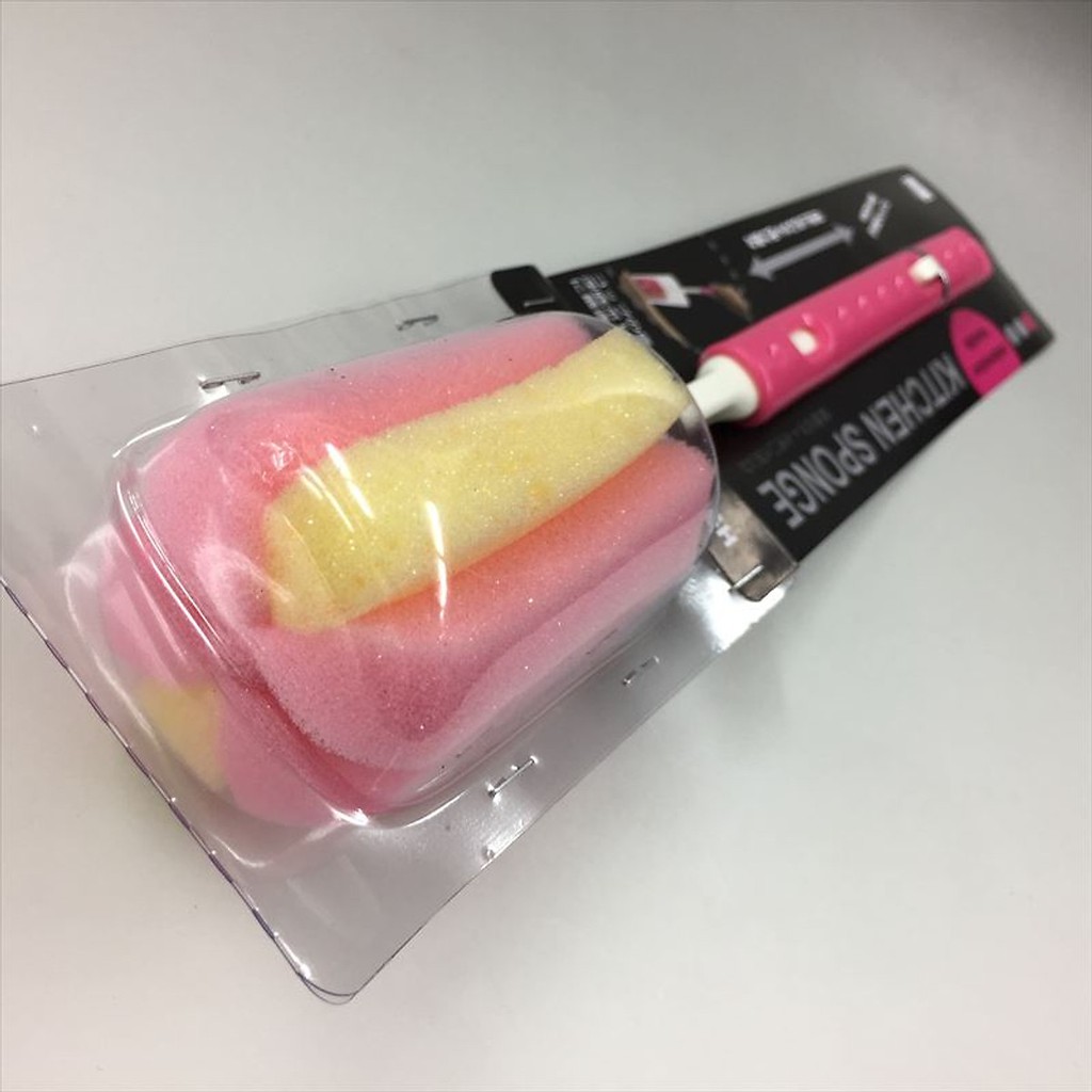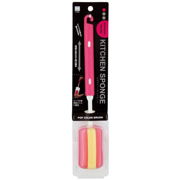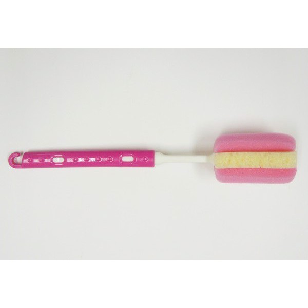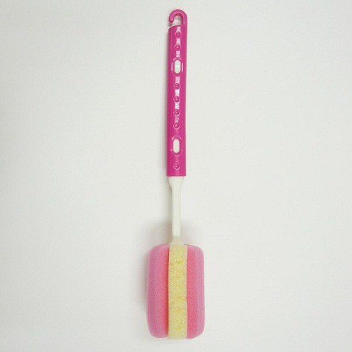Dụng cụ cọ rửa chai lọ, bình sữa bằng mút xốp (màu vàng, hồng)- Chất liệu: Nhựa và mút cao cấp