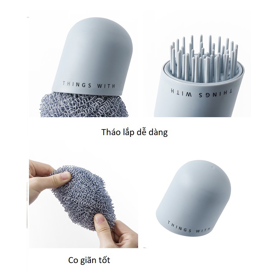 Dụng cụ rửa chén dĩa, xoong nồi tiện lợi có thể tháo rời, bàn chải chà nồi có tay cầm, rửa bếp tặng kèm 4 miếng rửa