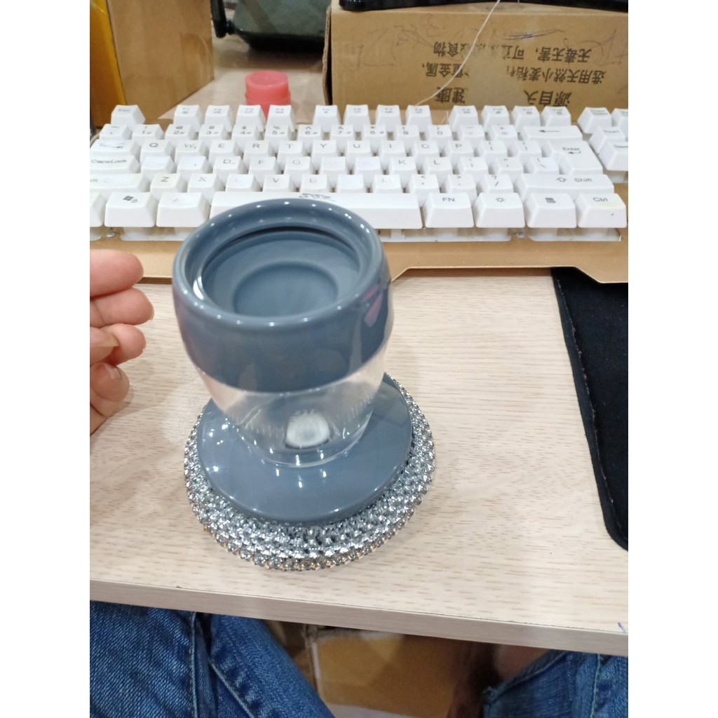 Dụng cụ cọ xoong nồi thông minh, chén bát này thực chất là một loại bàn chải đặc biệt, giúp bạn cọ tẩy nhanh những vết bẩm bám chắc trên thành xoong nồi mà không cần phải mất quá nhiều thời gian, công sức, rất hiệu quả và tiện ích cho các bà nội trợ hiện đại.Dụng cụ này có một bầu đựng nước rửa chén bát ở phía trên. Khi bạn cọ xoong nồi, nước rửa chén sẽ tự động chảy xuống phần bàn chải giúp tẩy cọ thật nhanh và sạch. Bạn chỉ cần cho một lượng xà phòng rửa bát rất ít, sau khi cho vào bầu đựng, bạn đổ thêm ít nước vào và lắc nhẹ rồi sử dụng. Đây là một cách rửa sạch xoong nồi tiện ích mà lại tiết kiệm nữa.