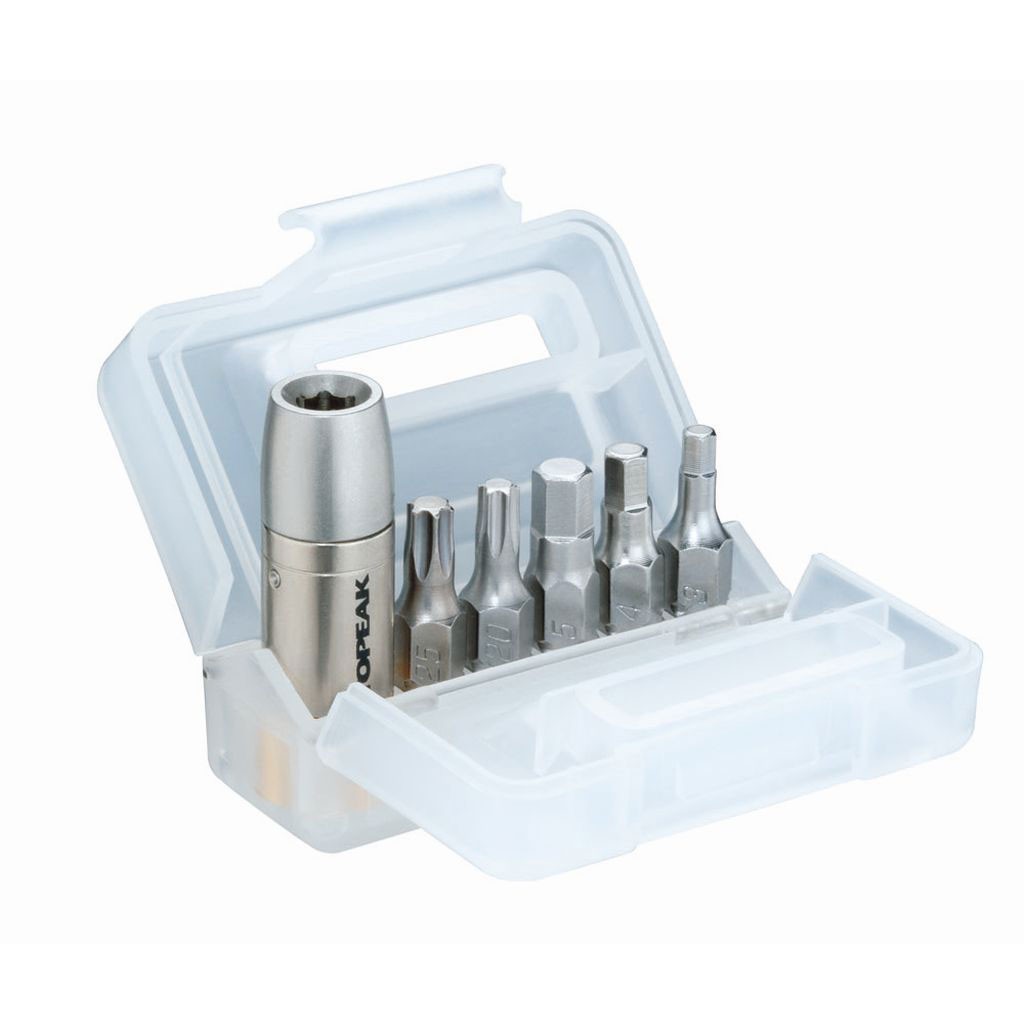 Bộ sản phẩm Topeak Nano TorqBox 5Nm có thể sử dụng kết hợp với bất kỳ công cụ nhỏ nào có đầu lục giác Allen 5mm (hoặc cờ lê đơn lục giác 5mm). Cơ chế giới hạn lực xoắn tiên tiến giúp bạn siết chặt bu lông theo đúng thông số từ nhà sản xuất giúp bảo đảm an toàn, tránh gây tụt ren, gây hư hỏng trên các bộ phận đắt tiền. Sản phẩm bao gồm 1 hộp nhựa chứa 1 đầu siết lực 5Nm và 5 đầu vít phổ biến nhất (đầu lục giác Allen 3 / 4 / 5 mm và đầu lục giác bông T20 / T25 Torx®).Kết hợp hoàn hảo với bộ dụng cụ Topeak Ratchet Docket DX, hoặc Topeak X-Tool+.