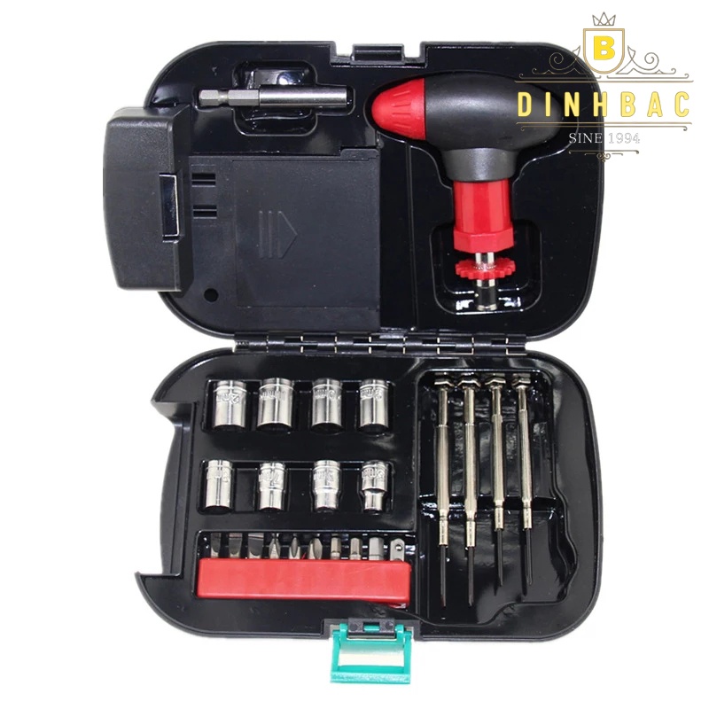 Gồm nhiều loại ổ cắm, ổ bit, và một túi nhỏ gọn Băng đo. Mỗi dụng cụ gọn gàng các cửa hàng bên trong chắc chắn