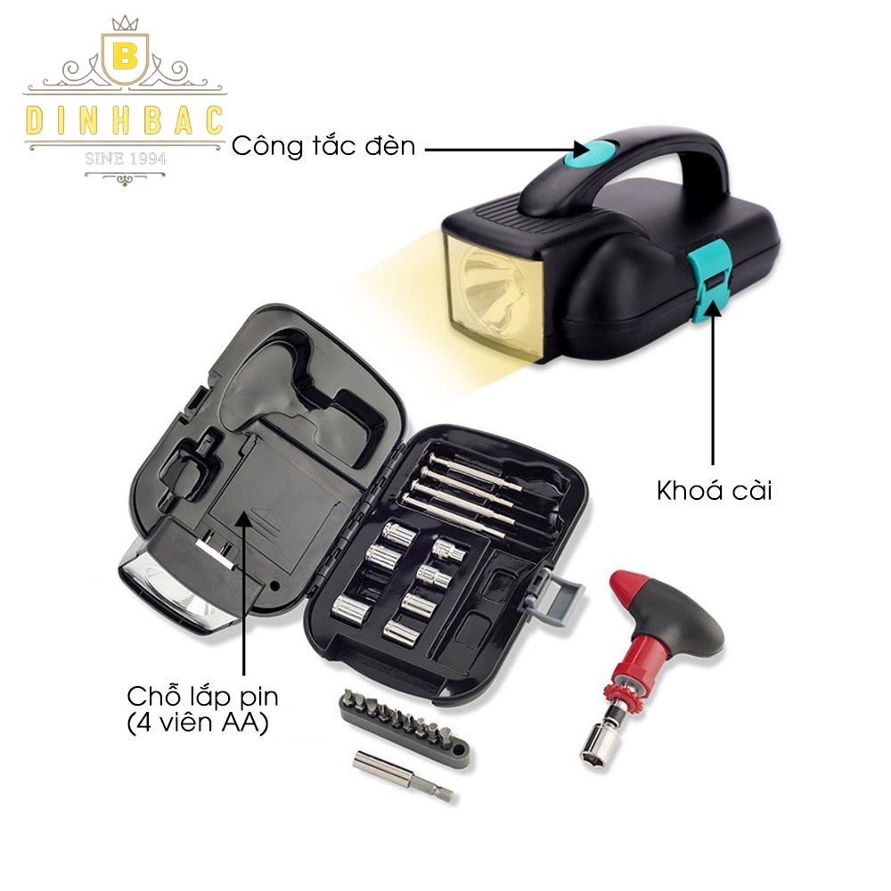 Nhà cửa & Đời sống > Dụng cụ & Thiết bị tiện ích > Dụng cụ > Hộp dụng cụ cầm tay || Bộ dụng cụ sửa chữa 24 chi tiết đèn siêu sángCòn hàng