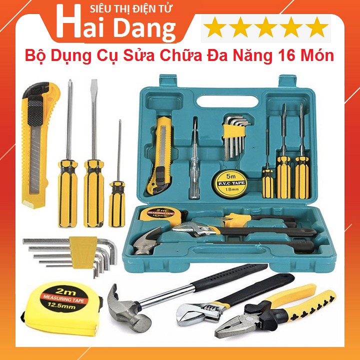 Giới thiệu Bộ Dụng Cụ Sửa Chữa, Búa Kìm Tô Vít Mỏ Lết Thước Dao Băng Keo Bút Thử Điện- Bộ Đa Năng 16 Món (Giá Sỉ)
