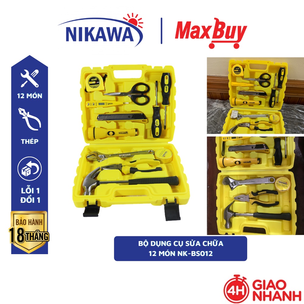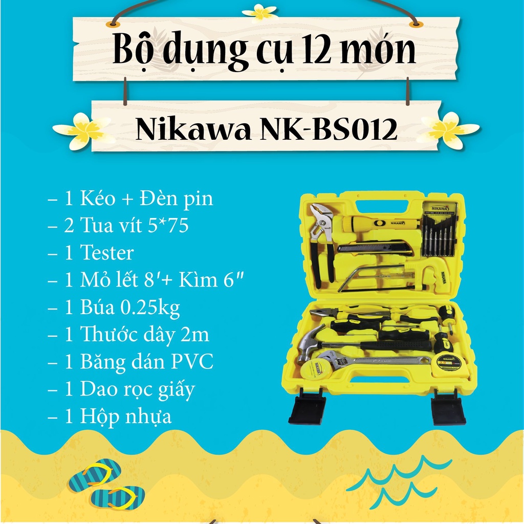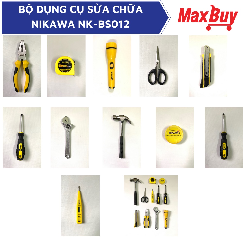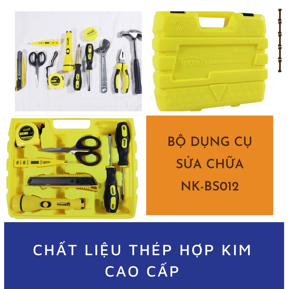 Bộ dụng cụ sửa chữa cầm tay gia đình đa năng đồ nghề điện sửa chữa Nikawa 12 món NK-BS012 bảo hành 36 tháng