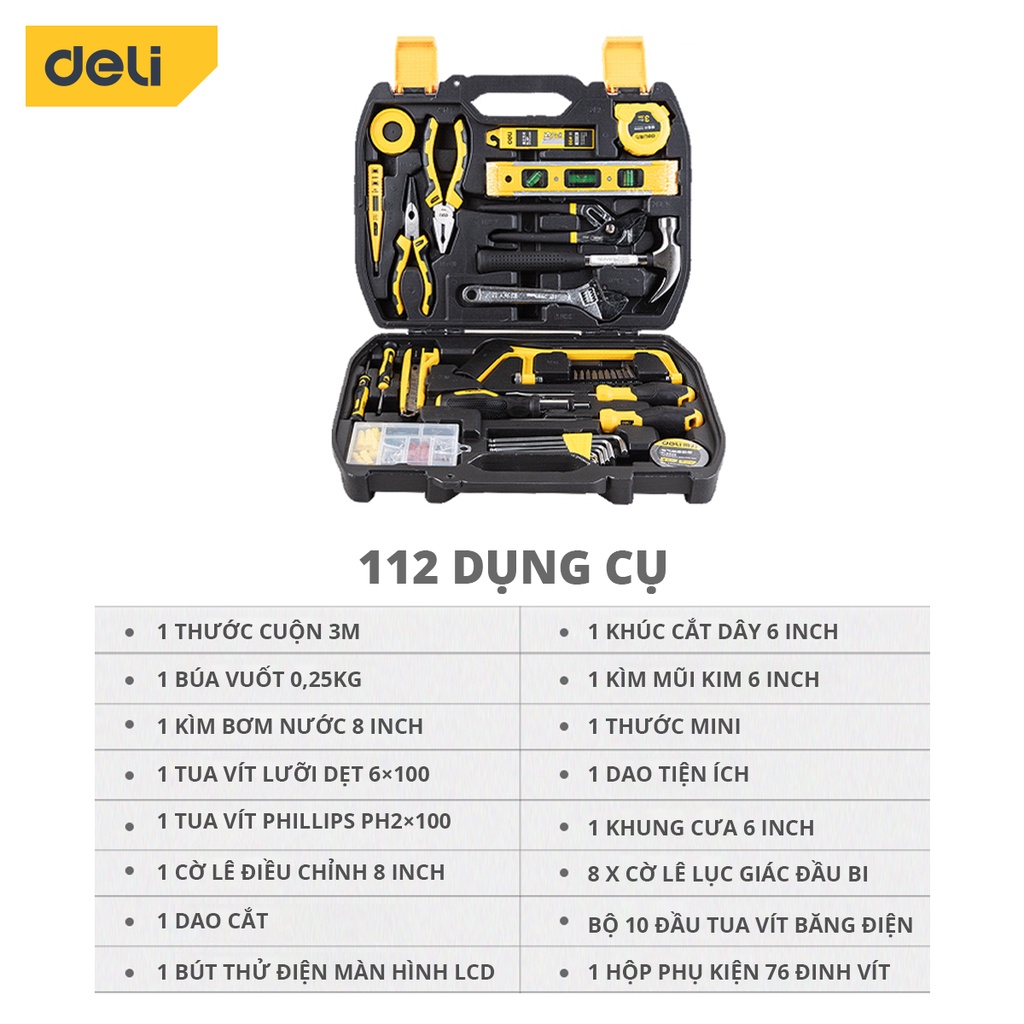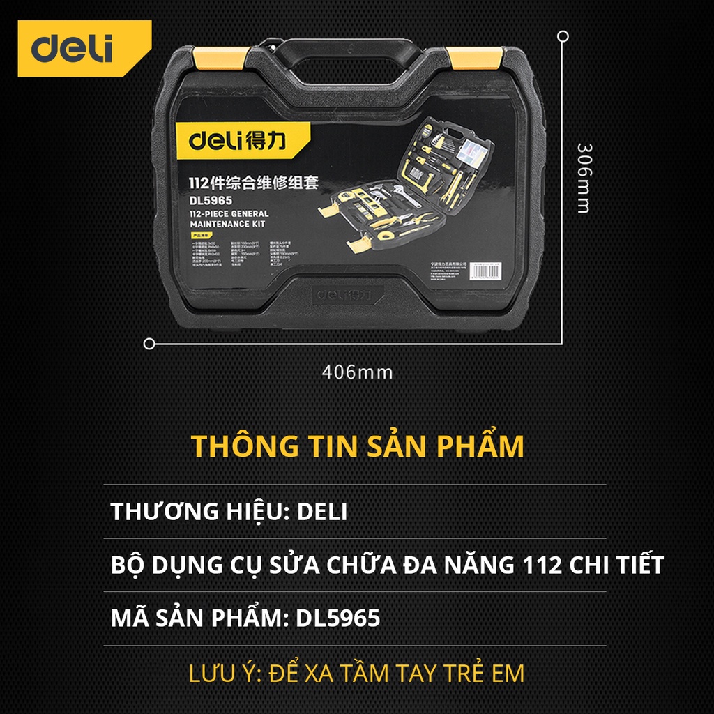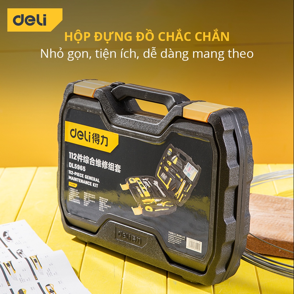 Bộ Dụng Cụ Sửa Chữa Đa Năng 112 Chi Tiết Deli Cao Cấp Chính Hãng - Phù Hợp Cho Mọi Mục Đích Sửa Chữa - DL5965