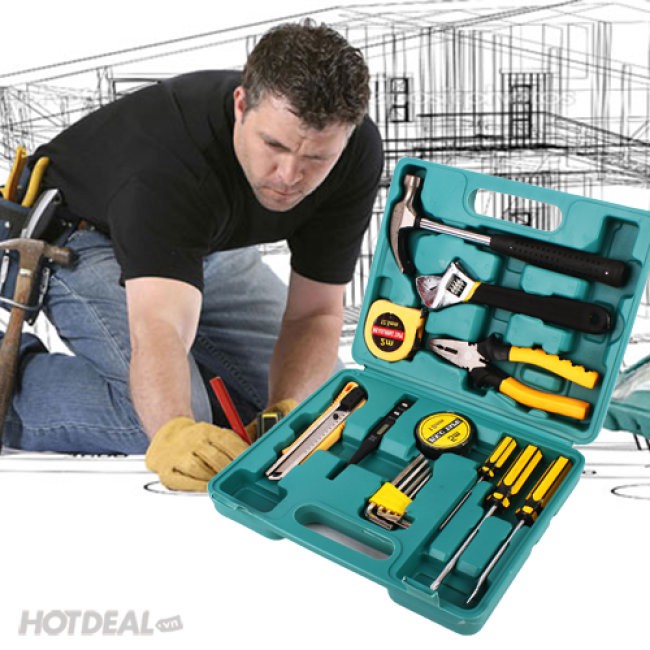 – Gồm 16 món: cờ lê, kềm, búa, tua vít, keo, thước, dao dọc giấy, thước kéo, băng dính điện…, công cụ hỗ trợ hiệu quả cho công việc sửa chữa các vật dụng điện trong nhà.
