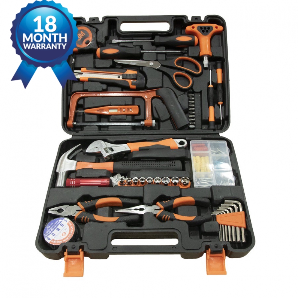 Bộ dụng cụ cầm tay đa năng 45 món được thiết kế với hộp đựng bằng nhựa cứng cáp, có tay cầm, tiện lợi để mang đi bất kì đâu. Bên trong hộp có từng vị trí vừa khít với từng dụng cụ, giúp bạn sắp xếp gọn gàng sản phẩm khi không sử dụng, cho việc tìm kiếm vật dụng mỗi khi cần trở nên dễ dàng hơn.