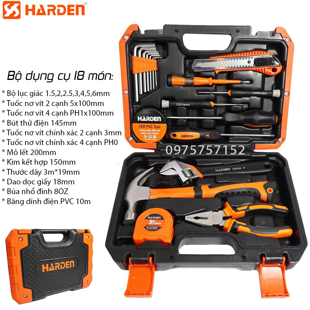 Nhà cửa & Đời sống > Dụng cụ & Thiết bị tiện ích > Dụng cụ > Hộp dụng cụ cầm tay || Bộ dụng cụ sửa chữa đa năng cao cấp 18 chi tiết HARDENCòn hàng