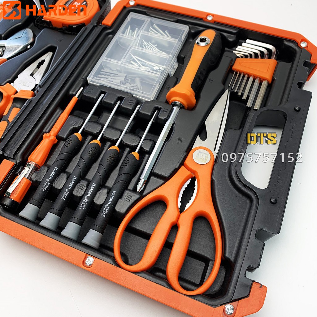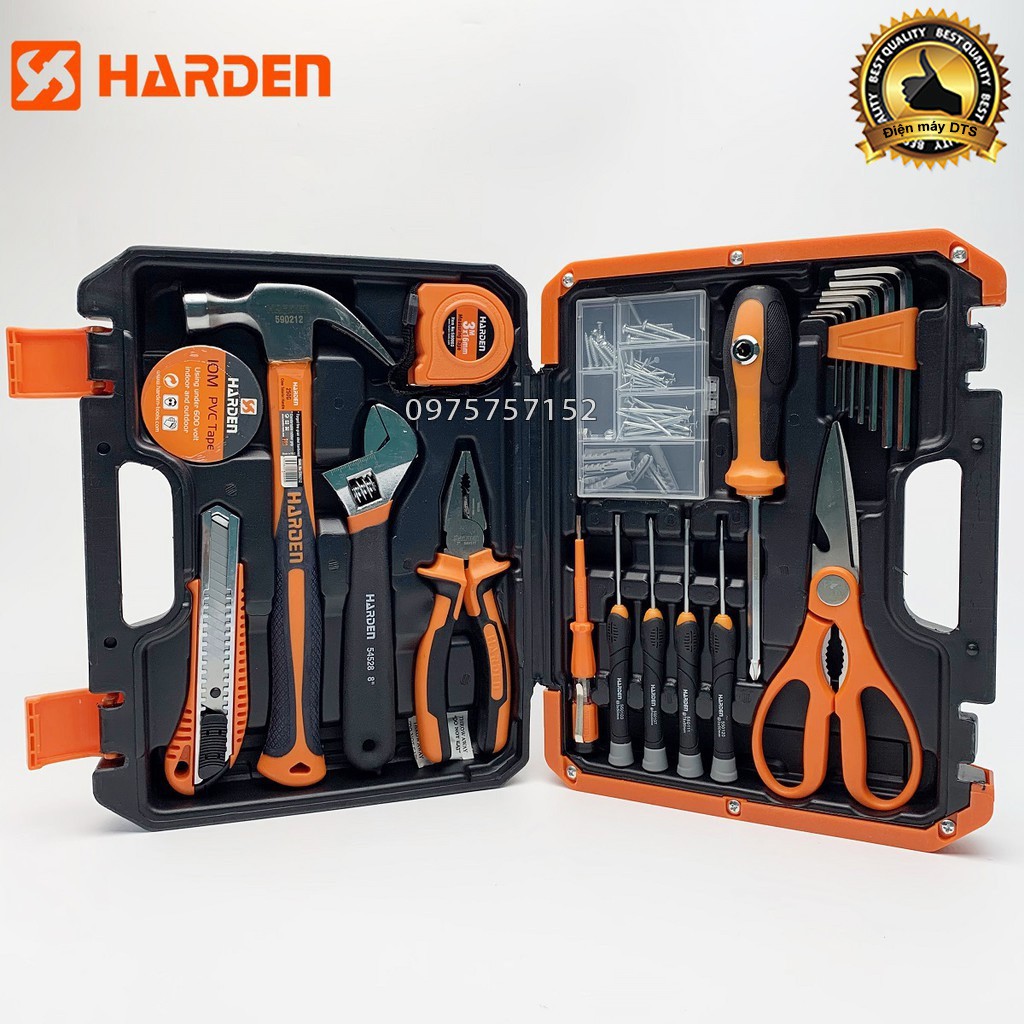 - Bộ dụng cụ đa năng HARDEN đáp ứng các tiêu chí trên, điểm nổi bật nhất là tiêu chuẩn xuất khẩu Châu Âu, dải công năng khá rộng cho phép cắt, vặn, tháo, mở ... sửa chữa hầu hết các hỏng hóc điện, xe cộ, mộc trong gia đình.