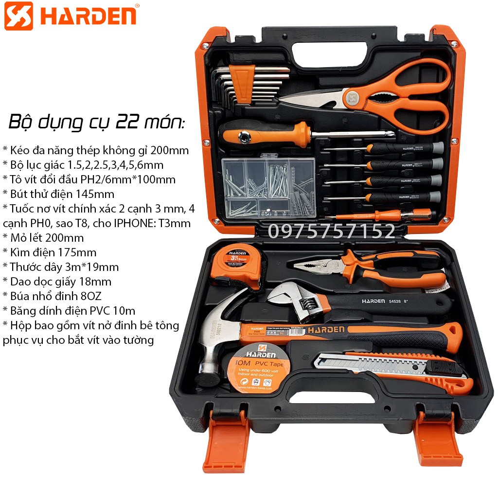 Bộ dụng cụ sửa chữa đa năng cao cấp 22 chi tiết HARDEN PRO, bộ dụng cụ đồ nghề sửa chữa bộ dụng cụ đa năng chuyên nghiệp