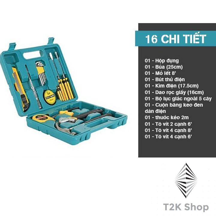 Giới thiệu Bộ dụng cụ sữa chữa đa năng gia đình 16 món tiện lợi - T2K Shop