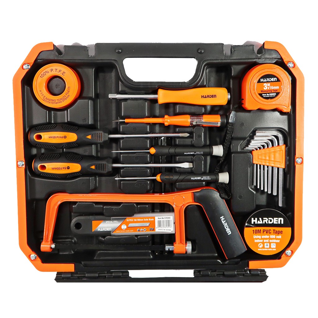 * Bộ dụng cụ Harden 39 chi tiết là sản phẩm phù hợp và cần thiết trong mỗi gia đình, bao gồm các dụng cụ chuyên sử dụng cho các công việc sửa chữa, lắp đặt đơn giản trong ngôi nhà.* Harden Tools là một thương hiệu nổi tiếng về cung cấp các thiết bị điện và dụng cụ, đồ nghề chuyên nghiệp hàng đầu trên thế giới hiện nay.