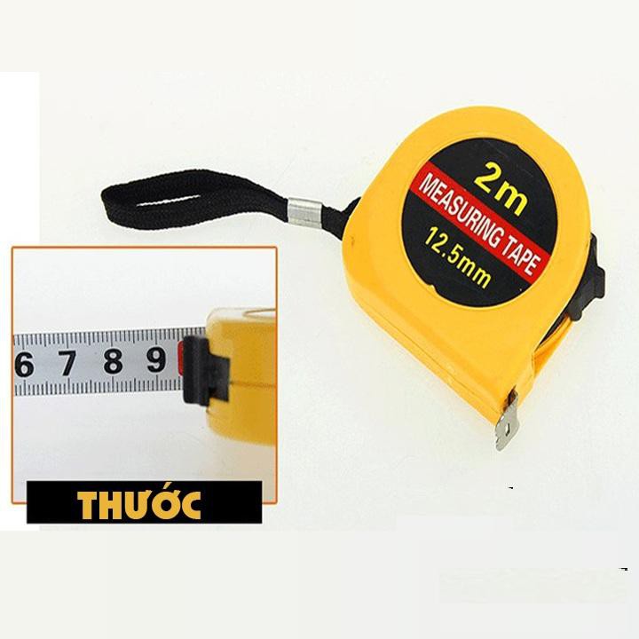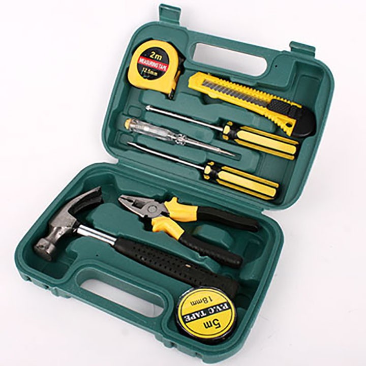 - Gồm 8 dụng cụ: 01 Búa + 01 Kìm điện + 01 Dao rọc giấy cao cấp (16cm). + 01 cuộn băng keo đen dán điện. + 01 thước kéo 2m. + 01 Tô vít đầu bằng 6’ + 01 Tô vít đầu vuông 8’ + 01 Tô vít đầu vuông 6’.