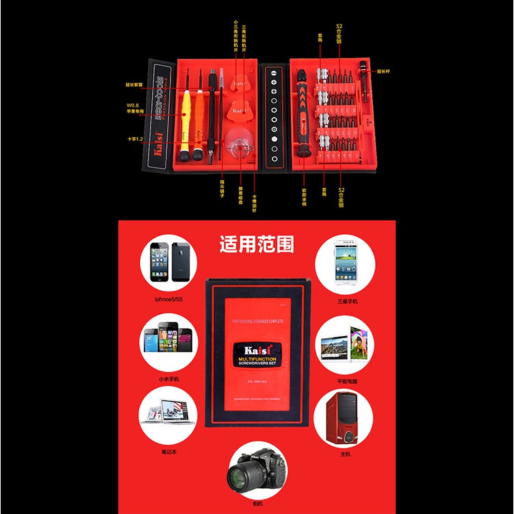 Bộ dụng cụ sửa chữa tua vít đa năng Kaisi Screwdriver Set 38 trong 1 từ thép hợp kim chất lượng cao (Hộp đỏ)- Sản phẩm mới 100%, chất lượng đảm bảo