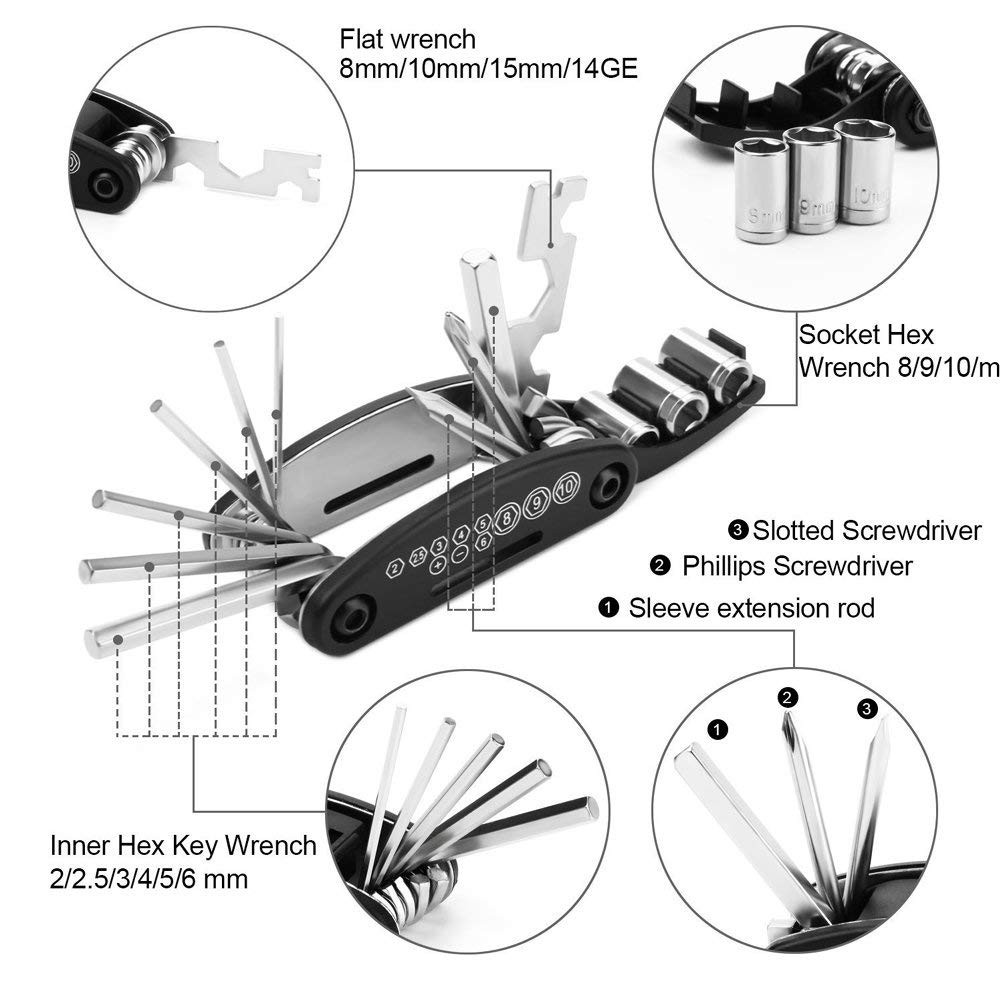 - Dụng cụ hoàn hảo để sửa chữa xe đạp, xe máy…có thể giúp khắc phục hầu hết các vấn đề cho xe của bạn khi bạn đang đi bên ngoài, siêu nhẹ và nhỏ để bỏ vào túi mang theo.