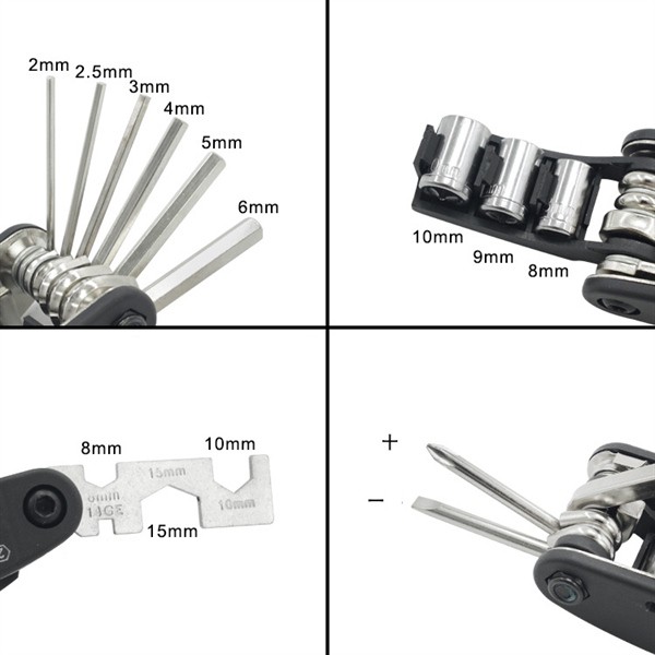- Dụng cụ hoàn hảo để sửa chữa xe đạp, xe máy…có thể giúp khắc phục hầu hết các vấn đề cho xe của bạn khi bạn đang đi bên ngoài, siêu nhẹ và nhỏ để bỏ vào túi mang theo.