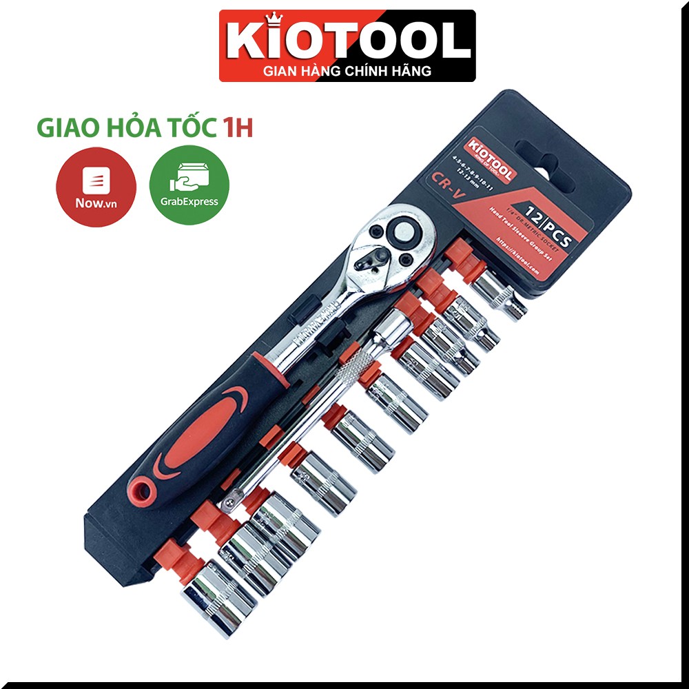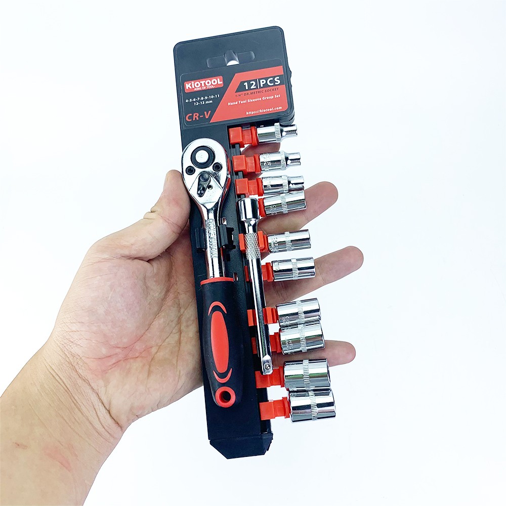 Bộ dụng cụ sửa chữa xe máy Kiotool 12 chi tiết đầu 1/4 4-13mm thép Crv cao cấp CHCK