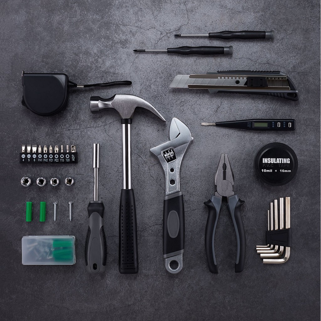 Điểm độc đáo của bộ dụng cụ đa năng Jiuxun Tools đó là tích hợp 60 công cụ trong 1 bộ sản phẩm, giúp người dùng dễ dàng tìm được công cụ sử dụng phù hợp. Cụ thể bộ sản phẩm bao gồm băng keo cách điện, dao rọc giấy, tuốc nơ vít dẹp, kìm, búa, thước dây 3m, bộ 5 khóa lục giác, cờ lê, bút thử điện, 2 tuốc nơ vít nhỏ, 1 tuốc nơ vít có thể đổi đầu vít và bộ đầu vít ốc vít, 1 hộp lưu trữ. Với số lượng sản phẩm lên đến 60 vô cùng phong phú, Jiuxiun Tools cho khả năng đáp ứng mọi nhu cầu sử dụng từ cắt dây điện, cố định đinh bị lỏng, vặn vít trong bàn ghế, quạt điện, máy tính, kiểm tra mạch....