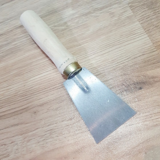 - Cán gỗ lưỡi thép cứng cáp bền bỉ, ứng dụng nhiều cho việc thi công vách, tường nhà như: lấy sơn rơi vãi trên cửa kính, sàn nhà hoặc tháo giấy dán tường.