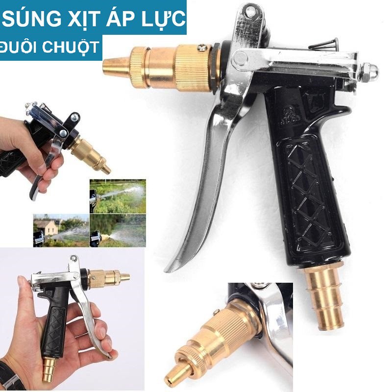 Dụng cụ Súng xịt nước rửa tất cả loại xe .vòi rữa xe.vòitưới cây,áp lực cao kim loại đuôi chuột ( đen )