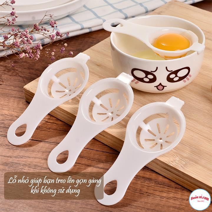 - Dụng Cụ Tách Lòng Đỏ Trứng có một lỗ úng lên nhỏ trên thân, giúp bạn có thể treo sau khi sử dụng, tiết kiệm không gian