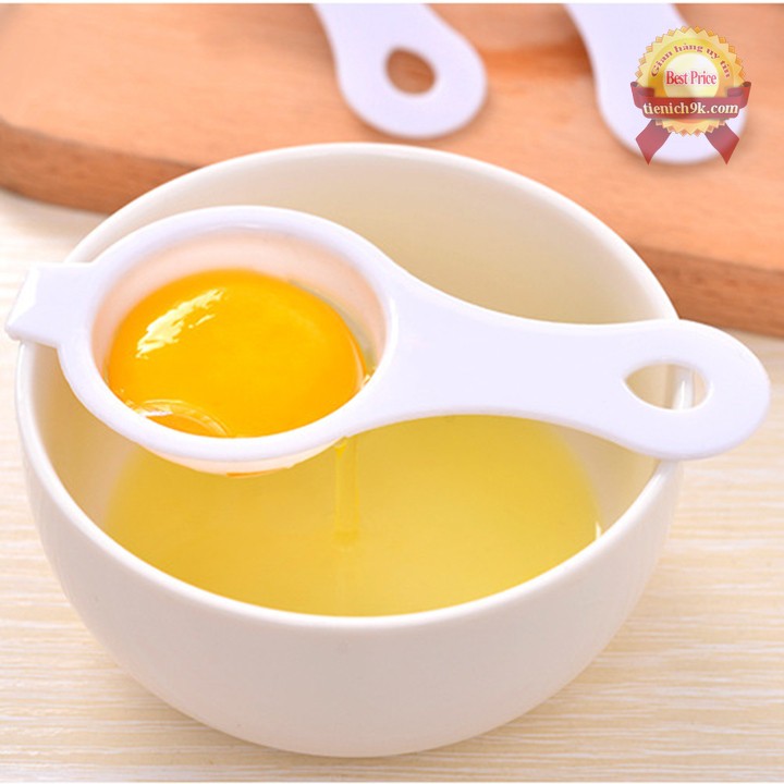 - Dụng cụ tách lòng đỏ trứng được thiết kế như một cái lưới vợt bằng nhựa. Bạn chỉ cần đập trứng vào dụng cụ tách lòng đỏ trứng này và lắc nhẹ, lòng trắng sẽ chảy xuống dưới và còn lại lòng đỏ nguyên vẹn ở trên cái vợt. Dụng cụ tách lòng đỏ trứng này đặc biệt hữu hiệu khi bạn dùng để làm bánh, chế biến một số món ăn cầu kỳ, hấp dẫn hoặc để đắp mặt nạ.