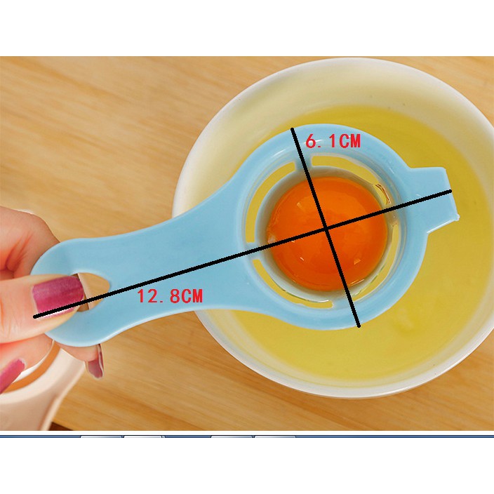 Kích thước : 12.8 x6.1cmDụng cụ tách lòng đỏ trứng được thiết kế như một cái lưới vợt bằng nhựa.